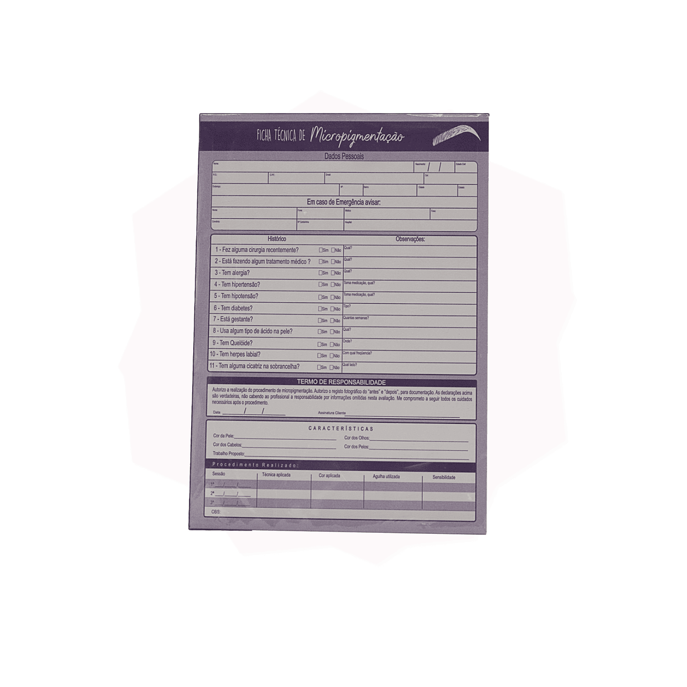 Bloco Ficha Anamnese Ficha Técnica de Micropigmentação Sobrancelhas